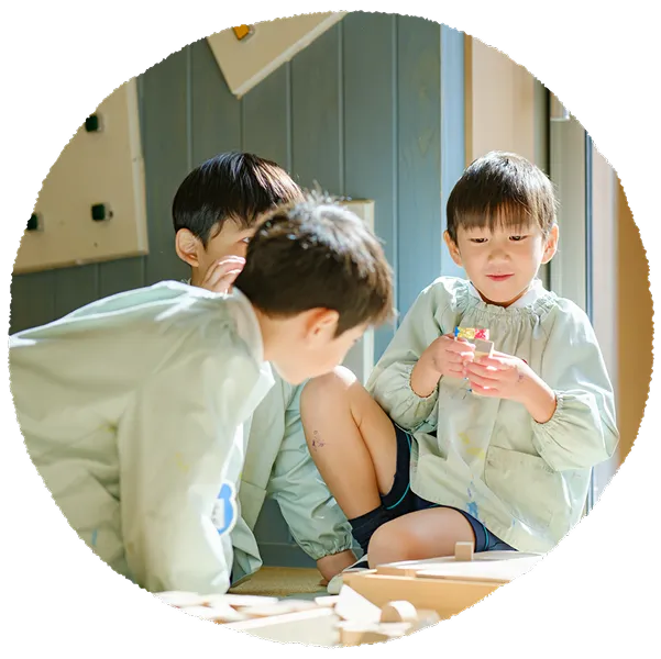 こどもの村では、子どもたちの個性や感性が自然に伸びるよう、園のすみずみにまで工夫を込めています。