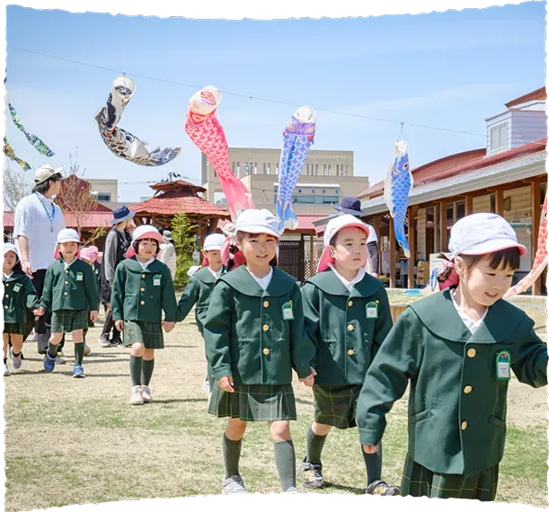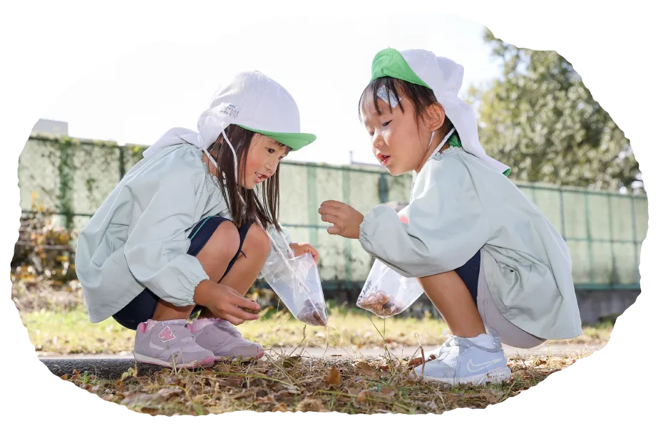 一人ひとり異なる個性を持つ子どもたちが、遊びや学びを通して驚きや発見を重ね、豊かな感性を広げてほしいという願いが込められています。