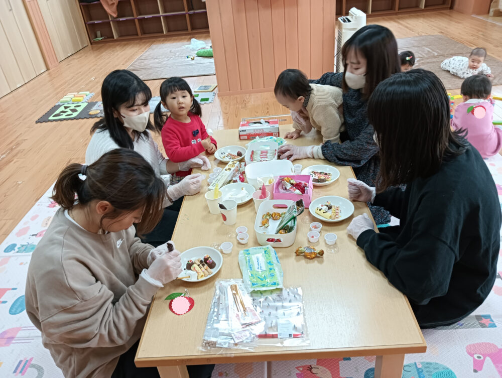 続きを読む12月最後のすももくらぶは、お菓子へのデコレーションをしましたよ🍫 ママたちの¨ちょっとした休憩タイム¨のお供になるようなお持ち帰りが出来れば…と企画しました🤗チョコペンが固まるのと戦いながらも可愛らしいデザインを作り上げていくママたち♪さてさて、どんなおやつができたかな⁉ チョコペンで飾り付け中😝 お姉ちゃんもお手伝い💕 お姉ちゃん2人へのプレゼントも作る優しいママ💓 電車や遊具、絵本を見て過ごしましたよ🌸 プチギフトバックに入れて完成♬どれもおいしそうですよね☺ 少しでもママたちの休息時間がほっこりしますように♬ 次回のすももくらぶは、1月8日(木)「いちご組とあそぼっ!」です🍓 0歳児クラスに遊びに行ってみましょう。近い月齢、ちょっぴり月齢が先輩のお友だちが園生活でどんなことをして過ごしているのか体験に親子で参加していきましょう! みなさんのご参加をお待ちしています🤗