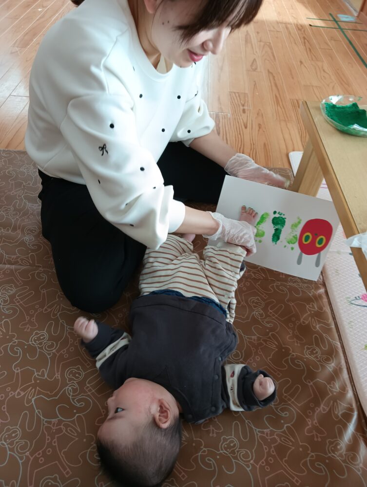続きを読む残すところあと2回となったすももくらぶ!今回は、今のお子さまの可愛らしい足型を残そうと足型アートを行ないました👣 さて、どんな様子かというと… はじめての場所にも慣れてリラックス! 不思議な感触で足に目を向けていますね♪ さかさまにみえるな…