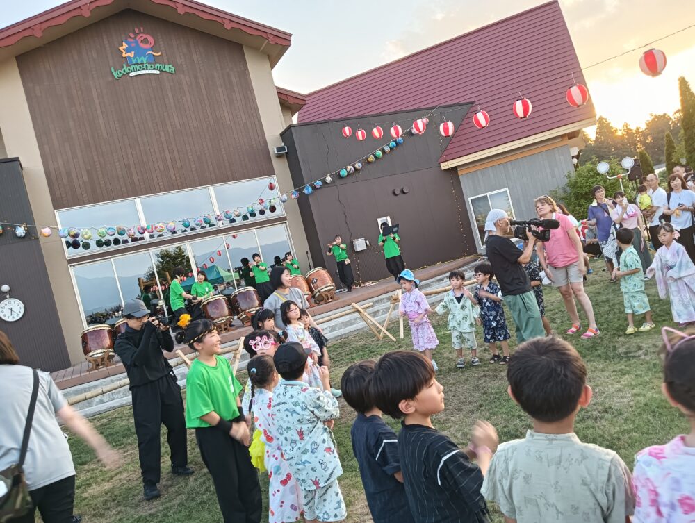 昨年度に続いて翠鼓さんにお越しいただき、会津磐梯山の演奏に合わせて子どもたちが盆踊りを踊ったり、迫力あるステージもおこなってくださいましたよ♪