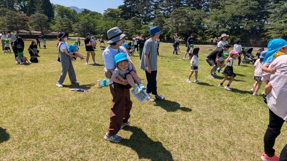 ねらいは、いろいろな経験に挑戦し、親子でふれあいながら楽しんで参加する。