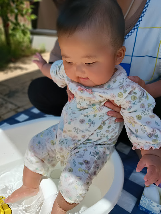 保育部さんも水(ぬるま湯)に触れていきましたよ!
