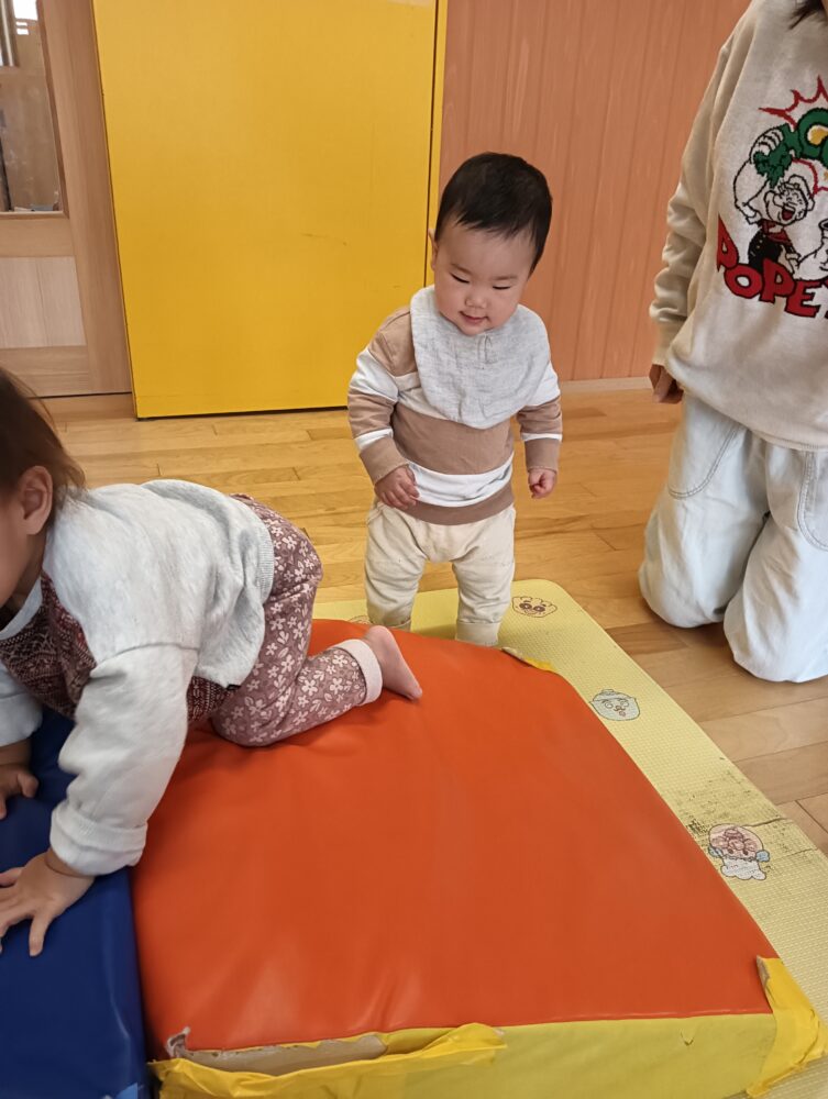 お友だちが大好きな子がすぐに近くまで来てくれて、お友だちの動きを真似たりじっと見ている姿がありましたよ!