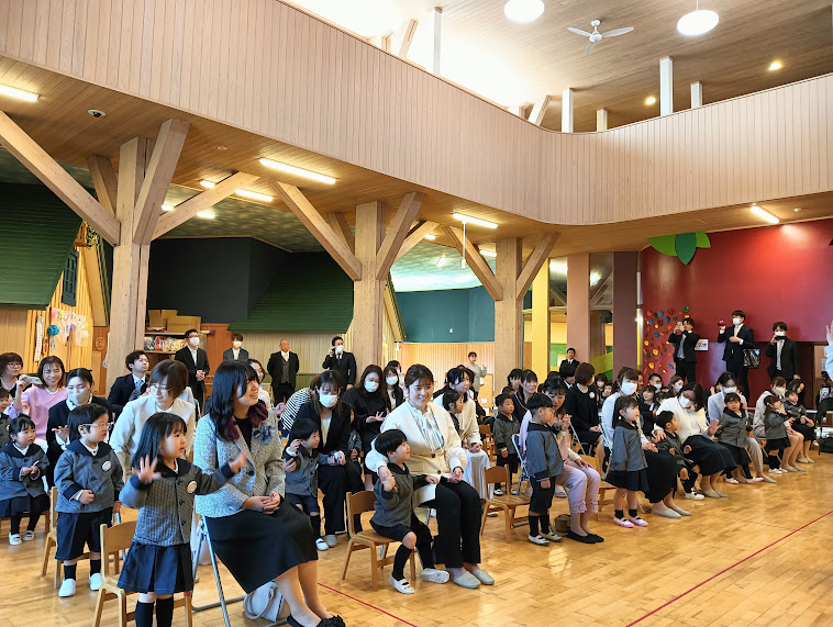 続きを読むぶかぶかの制服を身に着けて、ニコニコ期待にあふれた表情の子どもたちの入園式です。 少し前まで保育部でよちよち歩いていましたが、もう年少さん。 おうちの人と一緒に入園式を迎えることが出来ました。 「みつけたね じぶんいろ」を見つけられるように、幼保園でたくさん遊びましょうね!