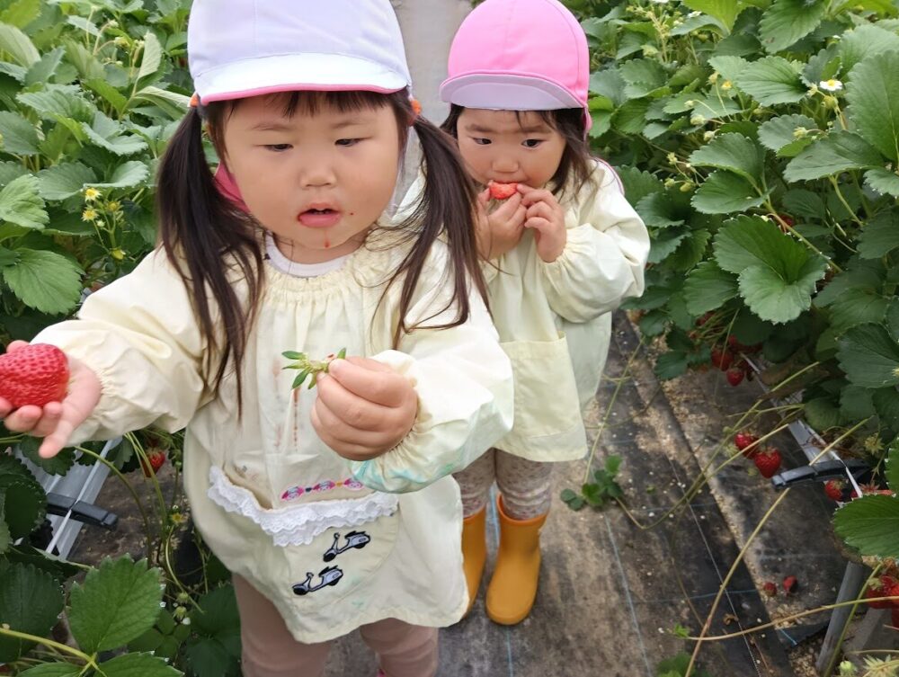 続きを読む今日はこどもたちのまちにまった「いちごがり」でした。 朝の雨も,バスに乗って出かけるときには止み みんなにこにこで出発!! バスに乗るのも楽しみながら「久ちゃん」へ到着しました。 元気にご挨拶しいちご狩りのスタート☆ 新鮮で大きな苺をたくさん食べることができました☆ ...