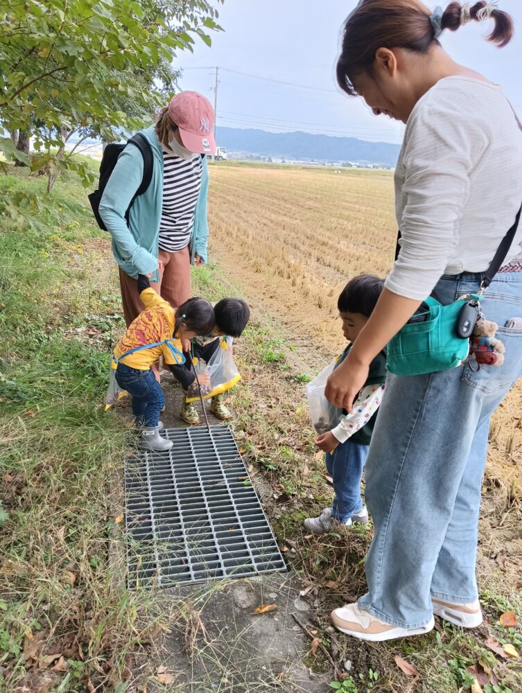 今回のぴかりんくらぶは、バスで川南小学校まで行ってきました🚌 バスを降りるとさっそくどんぐりを発見していた子どもたち! さぁて、どのくらい拾えるかな⁉ いっぱい拾うぞ~‼ たくさんのどんぐりを見つけてにっこり😝 きれいな葉っぱも見つけましたよ🍂 指さす方を見てみると… 小鳥さんのお家がありました🏠 袋に入れながら目は次のどんぐりを探しています👀 お姉ちゃんと一緒に来たよ💕 たくさんのどんぐりにカバンが傾いていますね(笑) 高い台に登ったよ! ジャングルジムからの滑り台♪ ブランコだって乗れちゃうよ(^^)/ みて~、きれいなイチョウのはっぱ! うしろからお友だちの手が出てきて、楽しくなっちゃった🤗 次回のぴかりんくらぶは、10月28日(火)「ハローウィンパーティ♪」です🎃 お持ちの方はぜひ仮装をしてきてくださいね! 合言葉でお菓子のおみやげも⁉ みなさんのご参加をお待ちしています🤗
