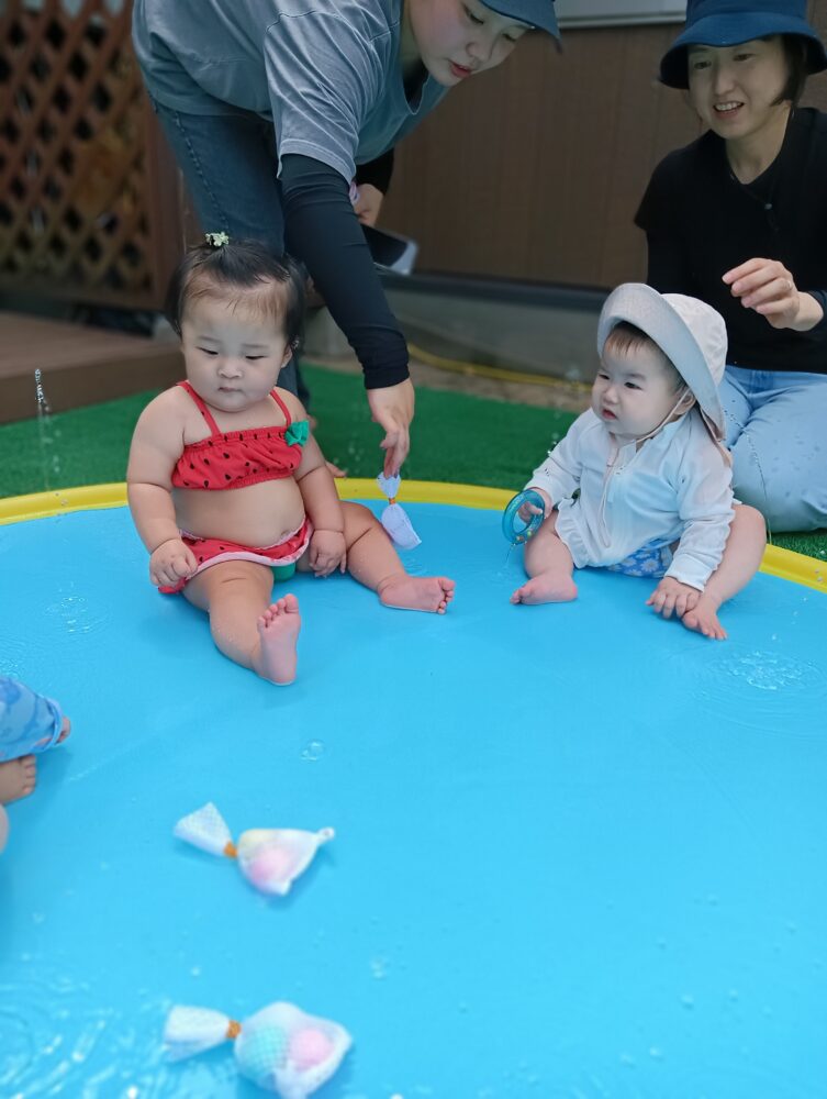 続きを読むすももくらぶ2回目の水遊び! 今回はポンポンを入れて凍らせた氷も準備し、水の冷たさ・氷の冷たさの違いを感じられるようにしました🌝 溶けていく様子をじーっと見たり、出てきたポンポンを摘まむ姿も見られました♪ まだまだ暑い日が続きますが、頭から水を浴びてさっぱり気持ちよさそう...